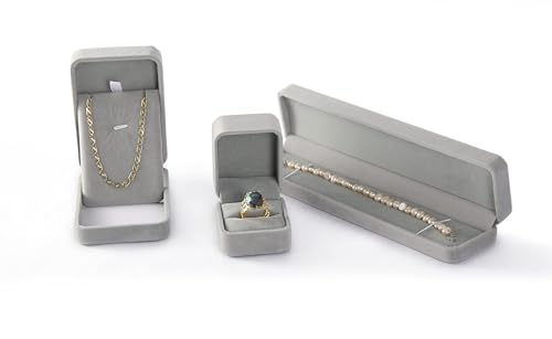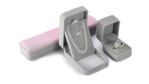 Generic - طقم صندوق هدايا مجوهرات للخواتم والعقد والاساور - 3 قطع - صمام - زهري ورمادي