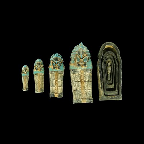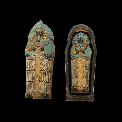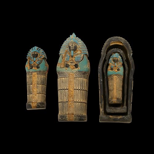 generic - طقم تابوت توت عنخ آمون كبير الحجم فريد من نوعه من الحجر الأسود مع تفاصيل صغيرة، صنع في مصر بعناية وحب