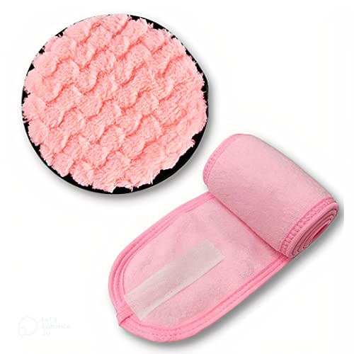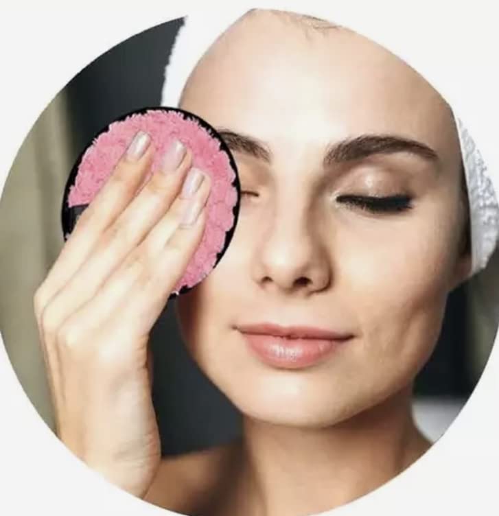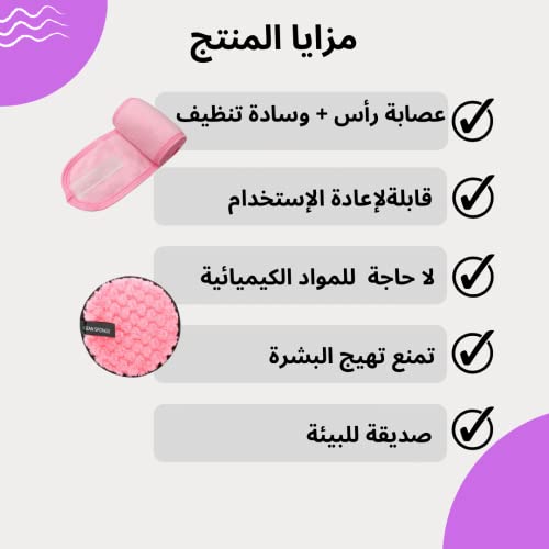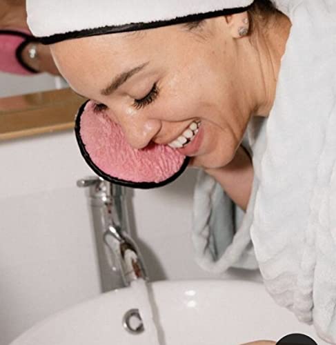 Generic - مجموعة وسادات ازالة مكياج قابلة لاعادة الاستخدام، فوط ناعمة لتنظيف الوجه مزدوجة الجوانب وقابلة للغسل من المايكروفايبر مع طوق رأس بينك.