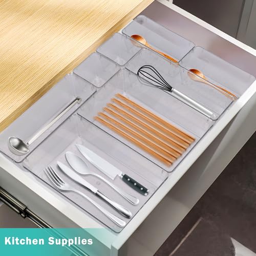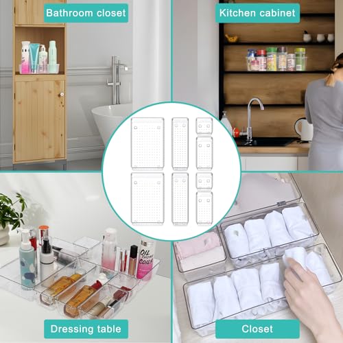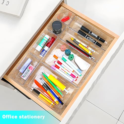Generic - صواني تنظيم درج مودولار لتصاميم مخصصة طقم صناديق تخزين بلاستيك شفافة متعددة الاستخدامات للمنزل غرفة النوم المطبخ الحمام والمكتب، 8 قطع