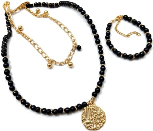 - طقم مكون من عقد وسوار مع دلاية مصنوعة من أحجار كريمة سوداء