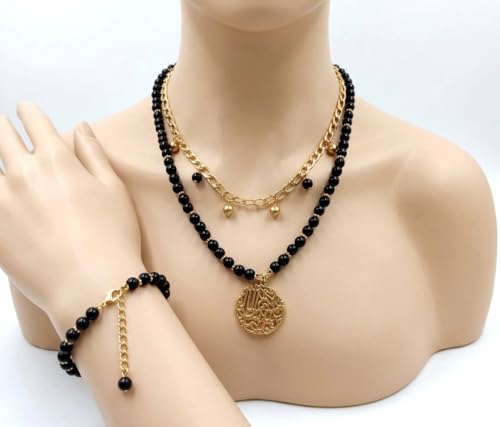 Generic - طقم مكون من عقد وسوار مع دلاية مصنوعة من أحجار كريمة سوداء