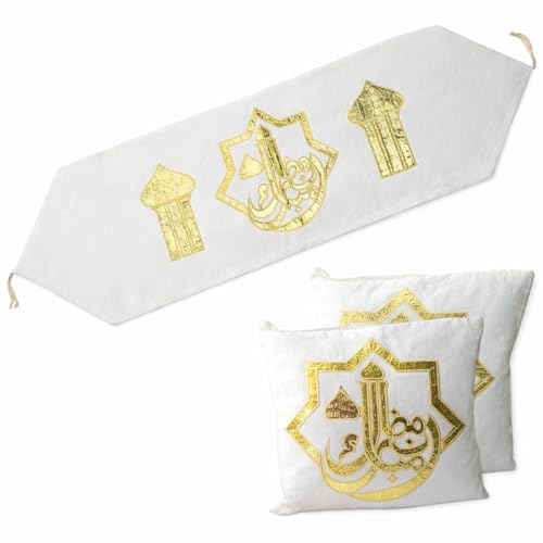 - طقم مفرش طاولة و2 غطاء وسادة لشهر رمضان