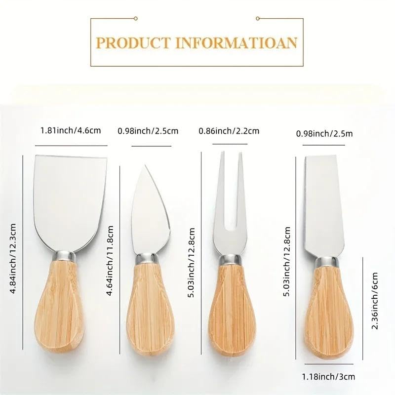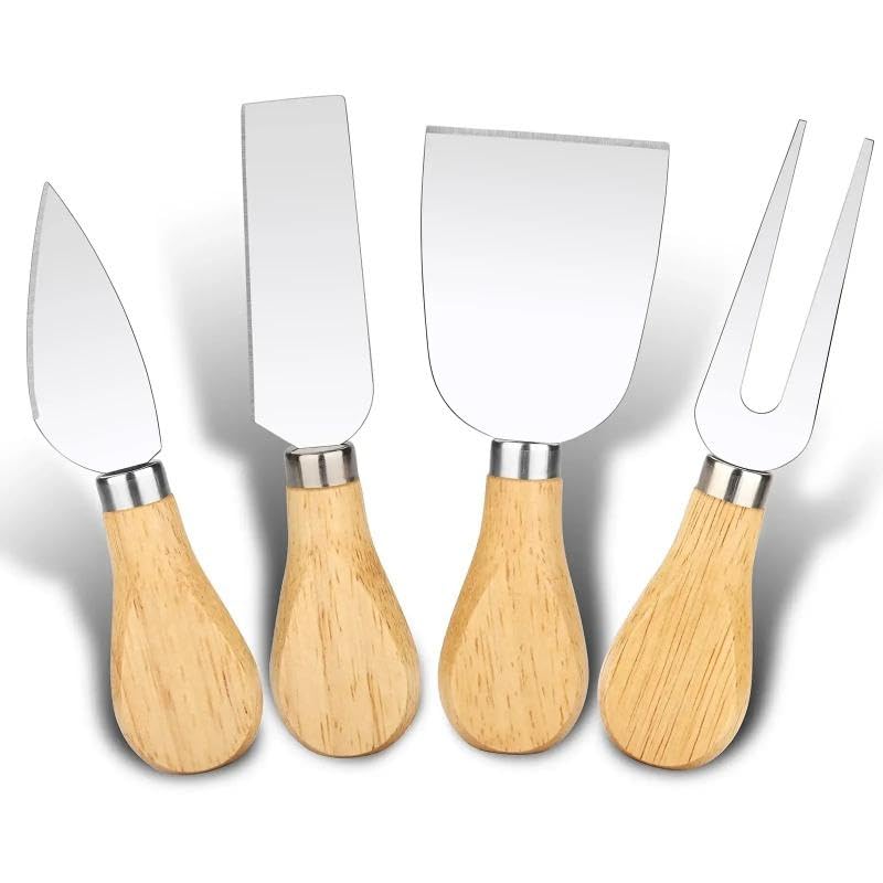 Generic - طقم أدوات بمقبض من خشب البلوط للجبن والزبدة، 4 قطع