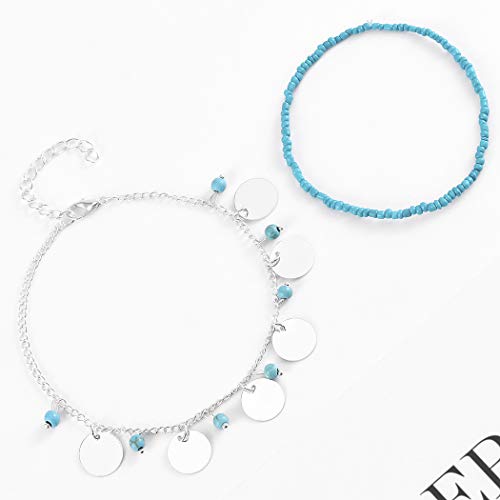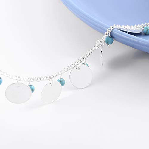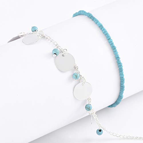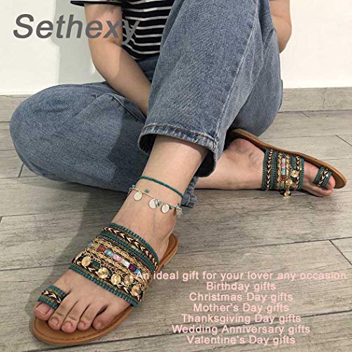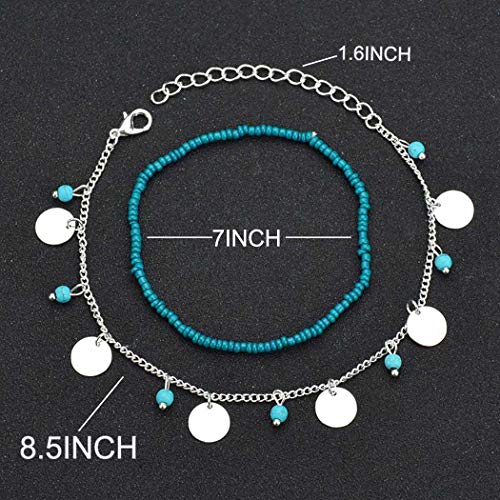 Sethexy - سيثيكسي خلخال متعدد الطبقات بتصميم بوهو للشاطئ بحر تركواز بحري مزين بالترتر سلسلة قدم خرز بوهيمي مجوهرات للنساء والفتيات فضي .