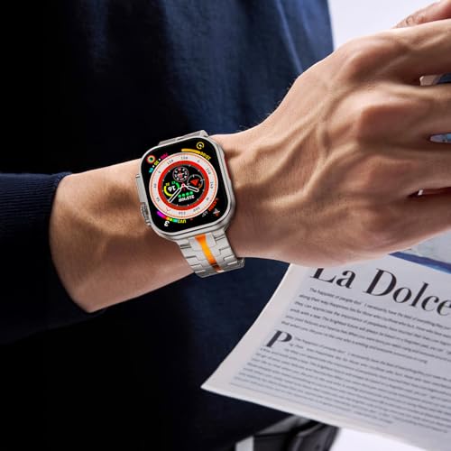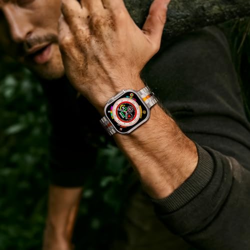 SEURE - سوار تيتانيوم متوافق مع ساعة آبل الترا 2 49 ملم 45 ملم 44 ملم 42 ملم للرجال من سيور، سوار معصم خفيف الوزن لسلسلة اي ووتش 9 8 7 6 5 4 SE