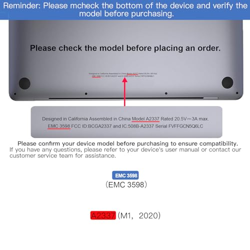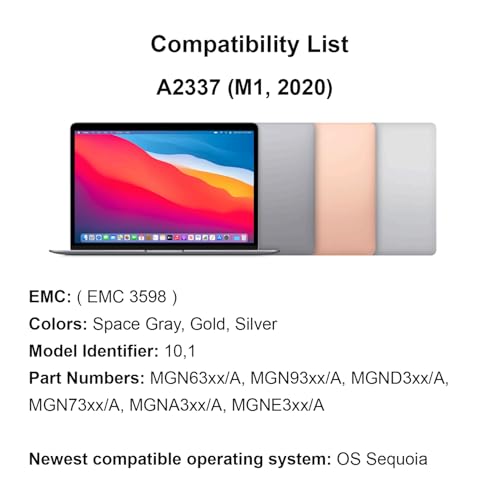 - الموديلات المتوافقة: جهاز ماك بوك اير M1 بشاشة ال سي دي موديل A2337 EMC 3598 وMGN63 بحجم 13.3 بوصة. الدقة: 2560×1600. - يرجى التحقق من رقم الموديل الموجود أسفل اللاب توب واللون لمعرفة ما إذا كان يتوافق مع هذا المنتج.