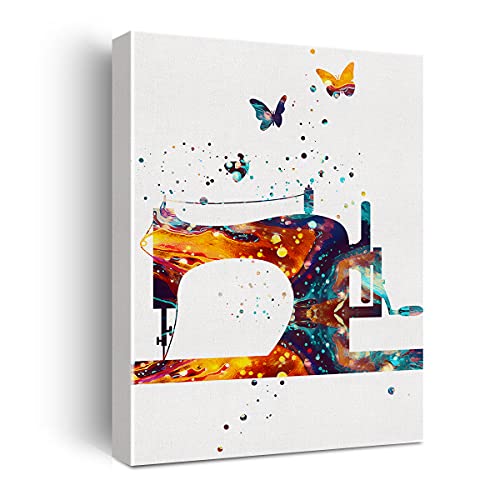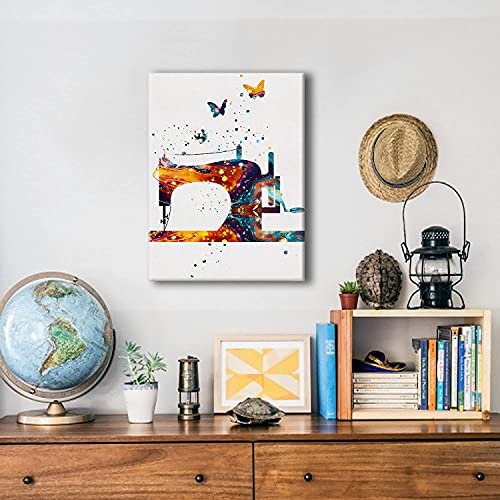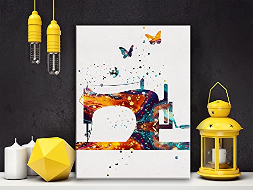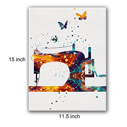 Hijie - بوستر حائط فني قماشي سهل التعليق برسمة ماكينة خياطة لديكور المنزل والمكتب وغرفة الخياطة، 12×15 بوصة بالوان مائية، أبيض