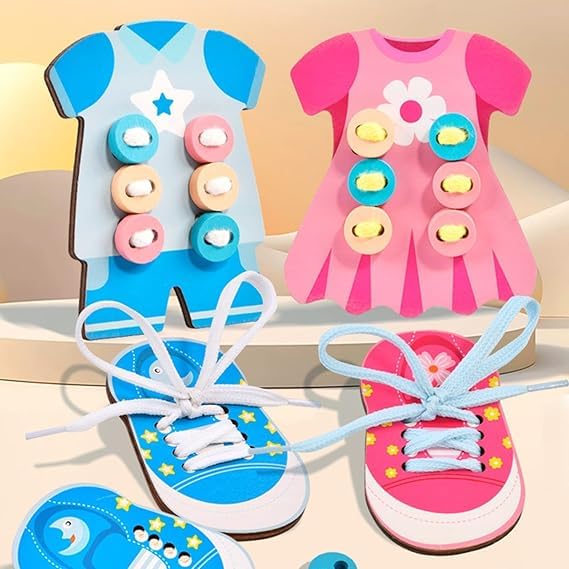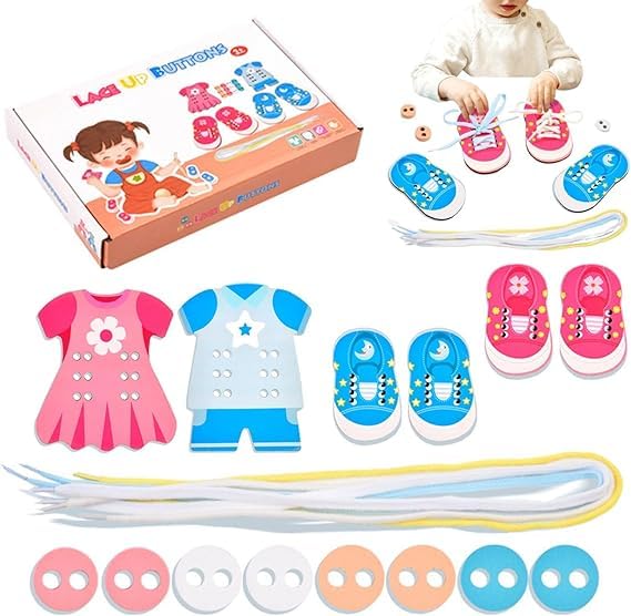 Generic - لعبة خياطة مع ازرار، العاب ربط الملابس - لعبة ربط للمهارات الحركية الدقيقة للملابس والاحذية مع رباط خيط خشبي، مجموعة خيوط.