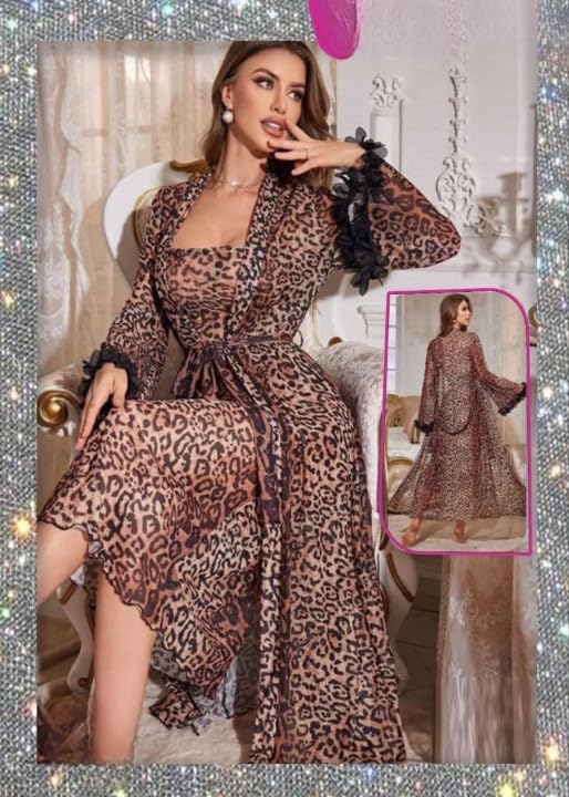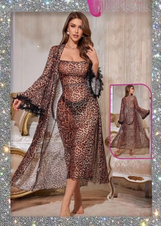 Generic - طقم لانجري مثير 4 قطع – قميص نوم طويل مع روب طويل من التل الشفاف الناعم مزين بالدانتيل على الأكمام – برو واندرويرمزين بالدانتيل – ثوب نوم أنثوي رومانسي للنساء