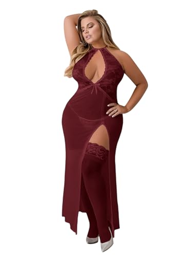 Generic - لانجري مثير طويل مع شق جانبي وياقة مفتوحة