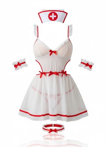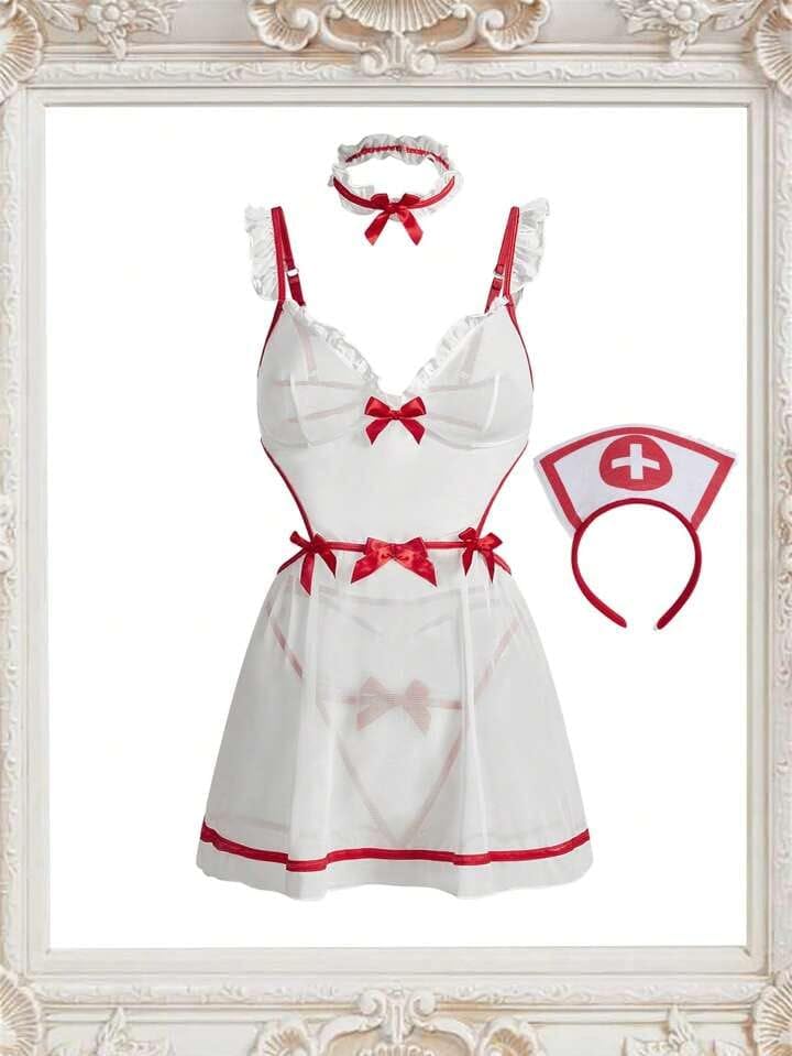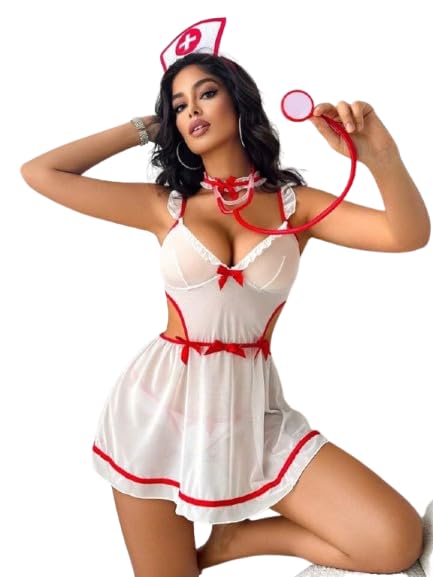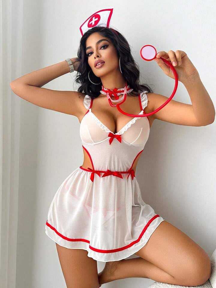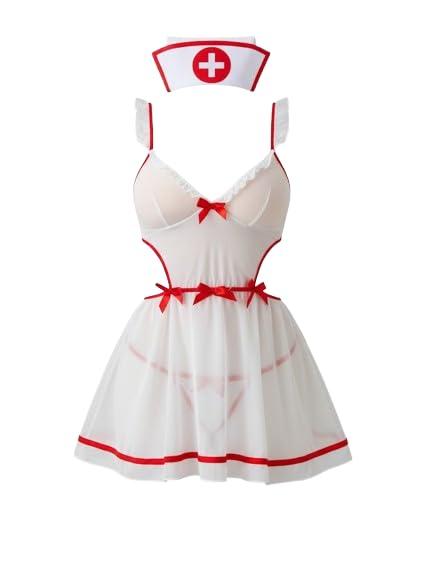 Generic - ملابس نوم مثيرة ستايل ممرضة – لانجري وردي شفاف من التل – وان سايز حتى 80 كيلو لإطلالة جريئة وأنثوية(HN1089)