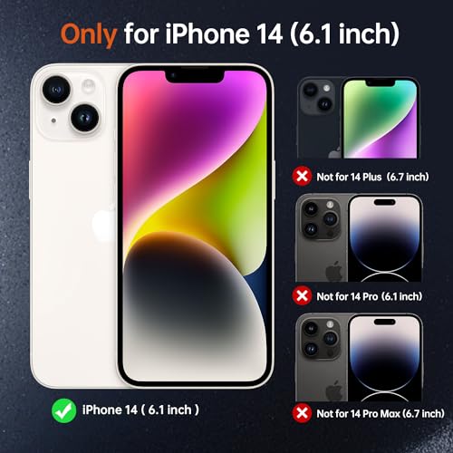 - [تصميم دقيق لحافظة هاتف ايفون 14]: استمتع بالملاءمة المثالية مع حافظتنا المصممة بدقة لهاتف ايفون 14. توفر الحواف المرتفعة 0.07 انش حول الكاميرا حماية فائقة ضد الخدوش، مما يحافظ على سلامة عدساتك. يضمن سهولة الوصول إلى المنافذ والأزرار والوظائف الراحة دون التنازل عن الحماية لهاتف ايفون 14.