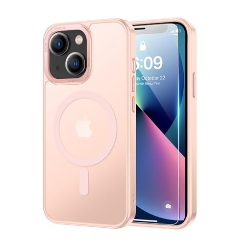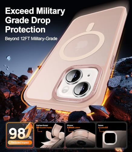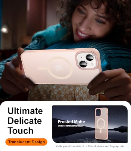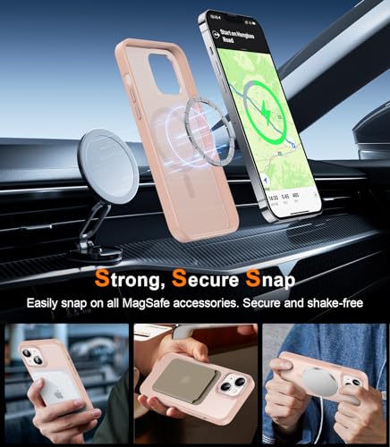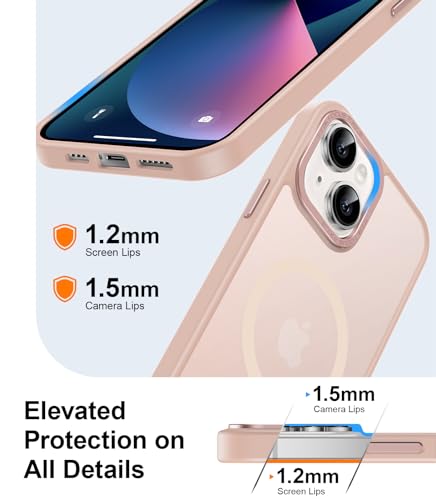 SEXYMOM - جراب مغناطيسي معزز لموبايل ايفون 14 مع واقي شاشة من سيكسي موم - متوافق مع سلك ام وار، تم اختباره من الدرجة العسكرية 21 قدم، غطاء شفاف غير لامع ورفيع مضاد للصدمات - بينك