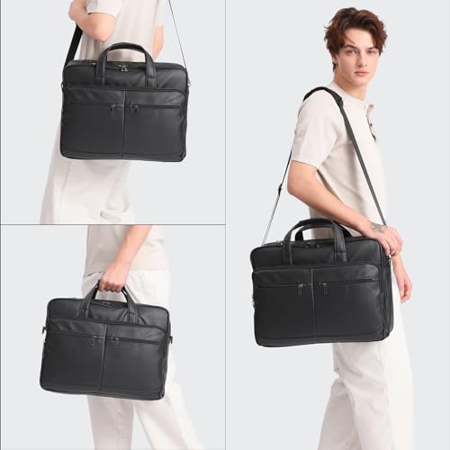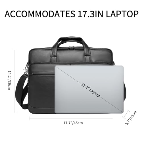 seyfocnia - شنطة بأحزمة جلد، شنطة كتف لأجهزة اللاب توب مقاس 17.3 بوصة، شنطة كتف للكمبيوتر واللاب توب للرجال من سيفوكنيا - أسود