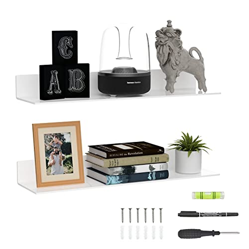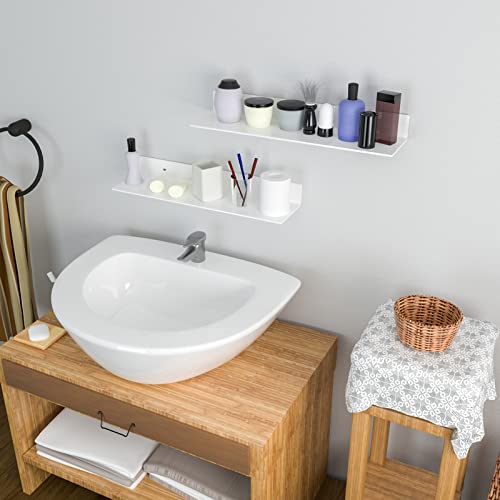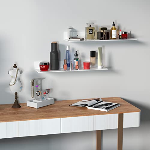 Sezanrpt - ارفف حائط اكريليك 24 انش للتخزين والتنظيم عرض من زجاج بليكسي لديكور الحائط والدمى ومستحضرات التجميل والعطور والكتب وفانكو بوب وشخصيات الاكشن ابيض