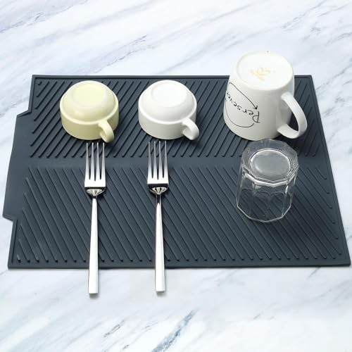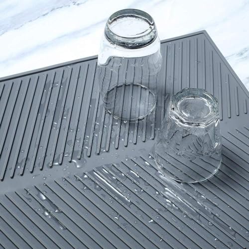 SFBBCLOZ - بساط تصريف الاطباق من السيليكون، بساط صديق للبيئة لتجفيف الاطباق لطاولة المطبخ، وسادة مضادة للانزلاق وعازلة للحرارة، حصيرة تصريف الحوض مع اخاديد تصريف كثيفة (مقاس M (17 انش ×