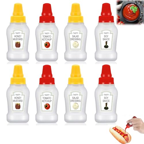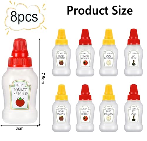 - محتويات العبوة: سوف تحصلين على 8 زجاجات صوص صغيرة، بما في ذلك قطعتين من زجاجات العسل والكاتشب وصوص الصويا وزجاجات ضغط لتتبيل السلطة، الكمية كافية لتلبية احتياجاتك اليومية.
