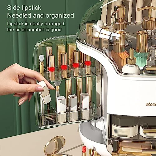 - سعة تخزين كبيرة: يتميز بتصميم متعدد الطبقات بسعة كبيرة، يمكن لصندوق تخزين مستحضرات التجميل هذا تخزين جميع مستلزمات التجميل الخاصة بك بأشكال وأحجام مختلفة. يضمن تصميم الدرج والفصل، جنبًا إلى جنب مع جيب أحمر الشفاه على الجانب، وضع كل شيء في مكانه. بالإضافة إلى ذلك، يحتوي الجزء العلوي من صندوق تخزين العطور على غطاء مقاوم للغبار، مما يحافظ على مستحضرات التجميل الخاصة بك بعيدًا عن الغبار والماء، مما يجعلها نظيفة وصحية.