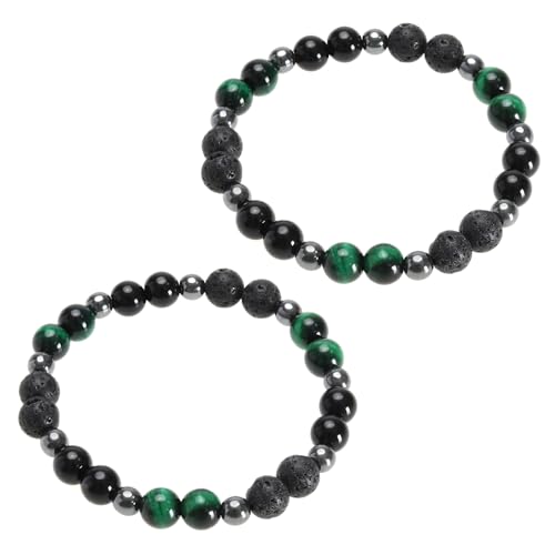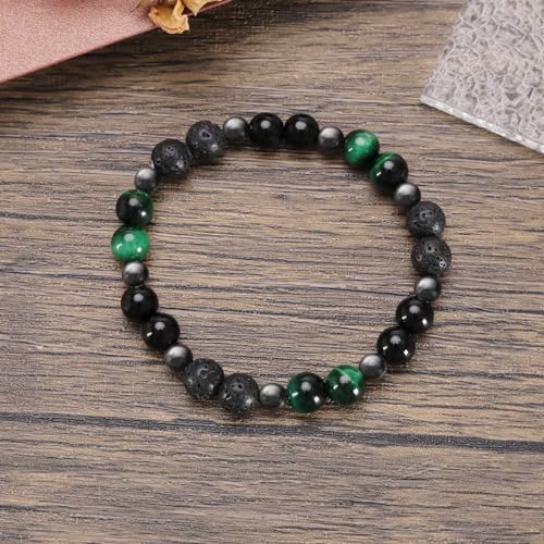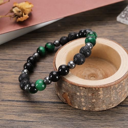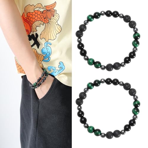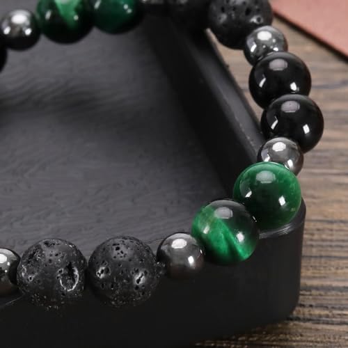 SG Store - سوار من حجر اللافا البركاني الطبيعي، سوار شاكرا للتوازن واليوجا من العقيق الطبيعي مناسب للرجال والنساء من قطعتين