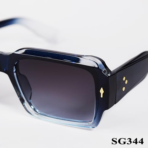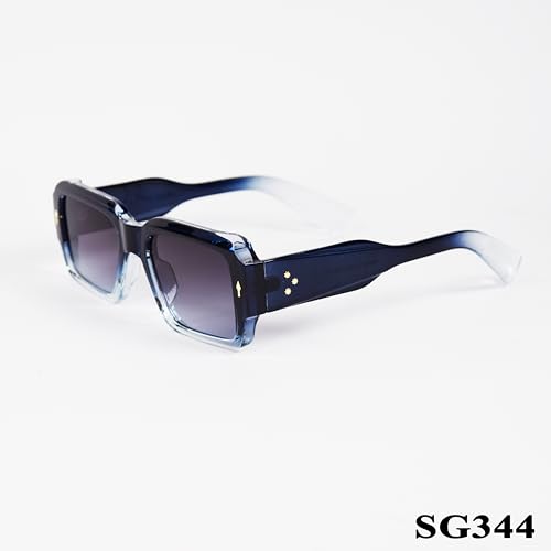 Generic - نظارة شمسية مستطيلة SG344، عدسات ملونة متدرجة، ازرق كحلي