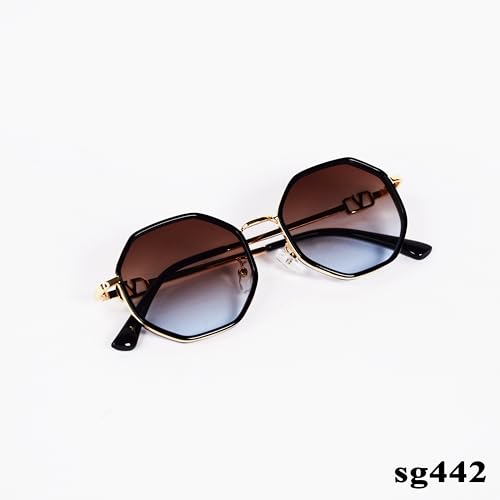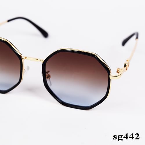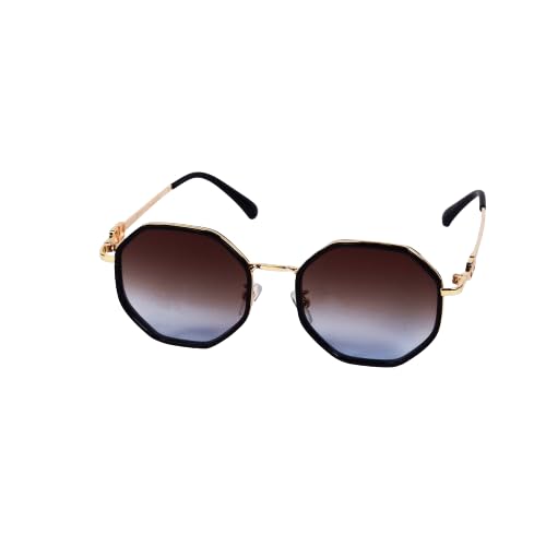 Generic - نظارة شمسية سداسية الشكل بعدسات بلون بني وازرق متدرج، اطار معدني اسود sg442، 50، الرجال