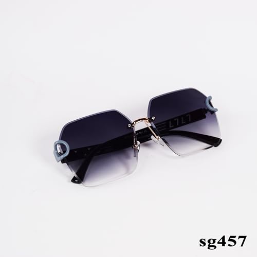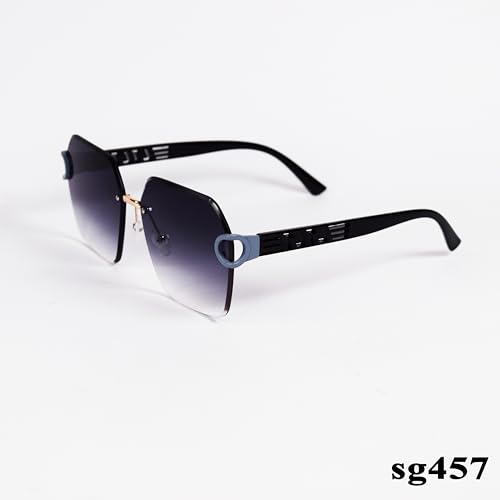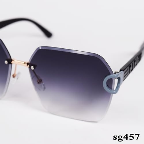 Generic - نظارة شمسية متدرجة كبيرة الحجم بدون اطار sg457 اسود حماية 100% من الاشعة فوق البنفسجية 65 للنساء