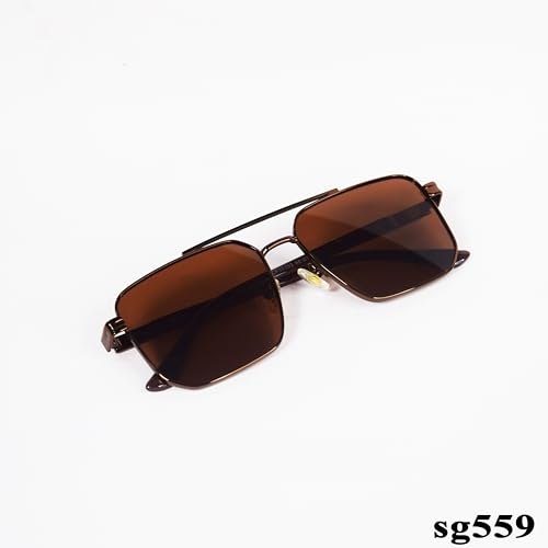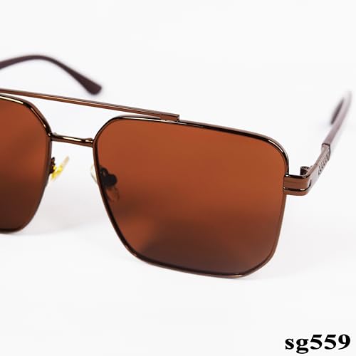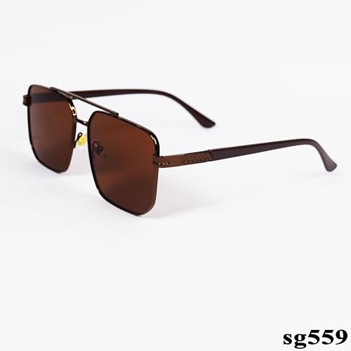 Generic - نظارة شمسية للجنسين SG559، اطار معدني، شكل مربع، عدسات ملونة بلون بني