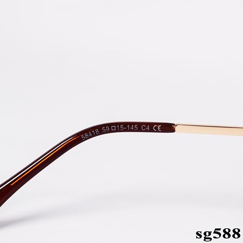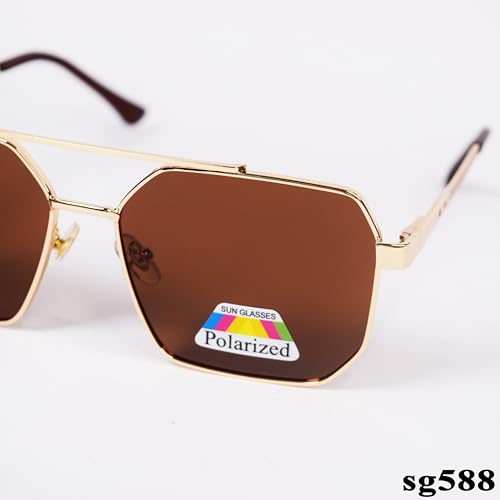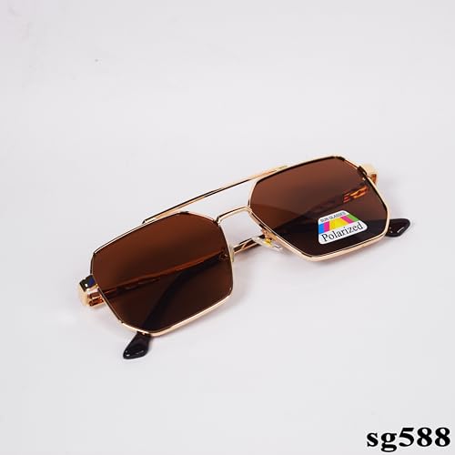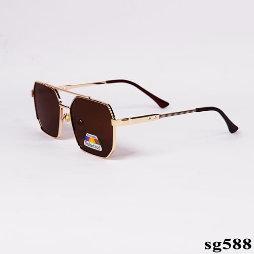 Generic - نظارة شمسية مستطيلة الشكل للرجال بعدسات بلون كهرماني واطار معدني sg588، ذهبي/بني