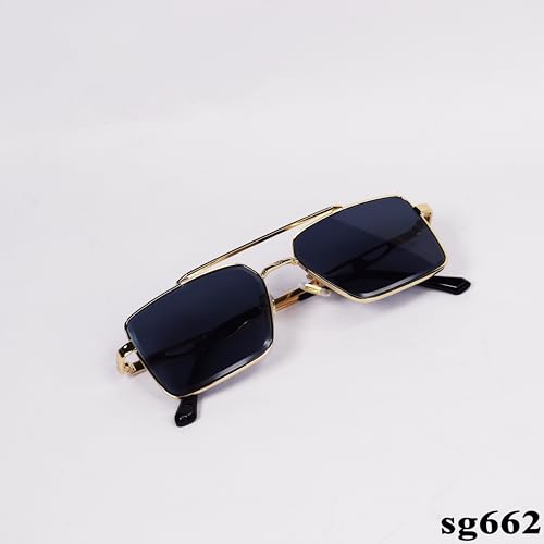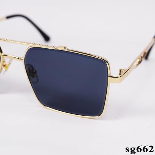 Generic - نظارة شمسية بعدسات مستقطبة باطار معدني مستطيل عدسات بلون كحلي مقاس 5.7 انش × 2.17 موديل sg662 للكبار من الجنسين