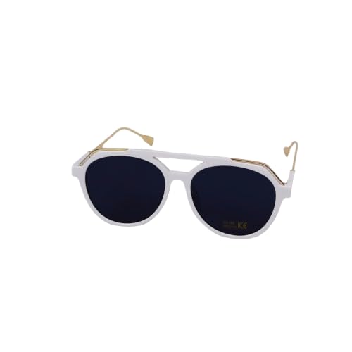 Generic - نظارة شمسية باطار بيضاوي من البلاستيك، عدسات رمادية اللون، SG679، أبيض وذهبي