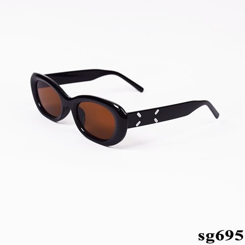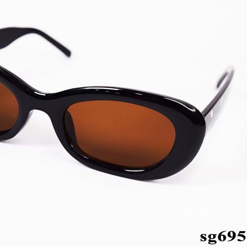 Generic - نظارة شمسية بيضاوية بعدسات بلون بني واطار اسود sg695