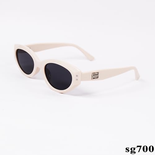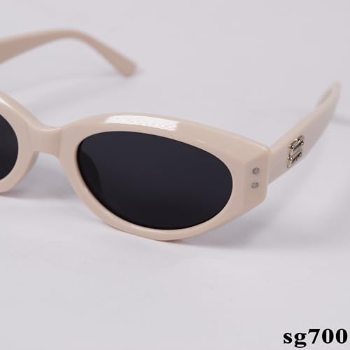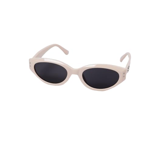 Generic - نظارة شمسية بيضاوية ريترو بعدسات سوداء، اطار بيج sg700