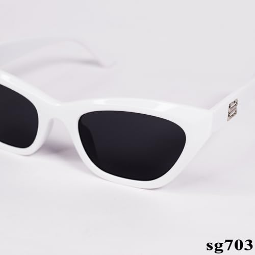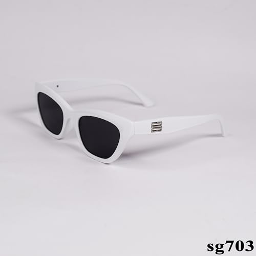 Generic - نظارة شمسية انيقة بتصميم عين القطة باطار ابيض وحماية 100% من الاشعة فوق البنفسجية موديل SG703