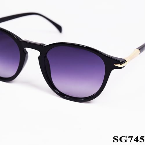 Generic - نظارة شمسية للجنسين SG745، اطار اسود، عدسات ارجوانية متدرجة