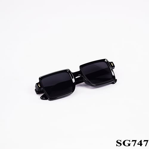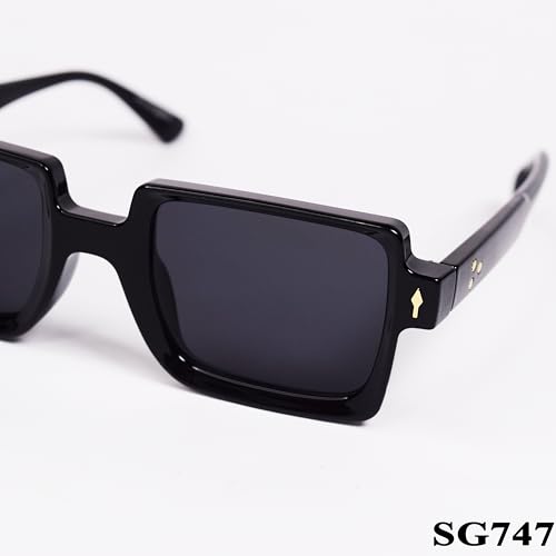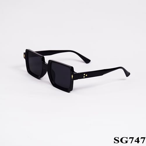 Generic - نظارة شمسية مربعة انيقة sg747، اطار اسود، حماية 100% من الاشعة فوق البنفسجية