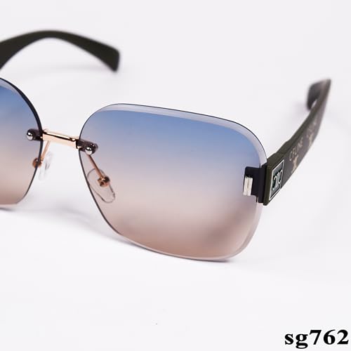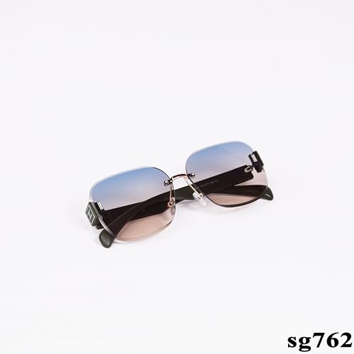 Generic - نظارة شمسية SG762 بدون اطار مع عدسات ملونة متدرجة معدني عرض 6 سم للكبار من الجنسين