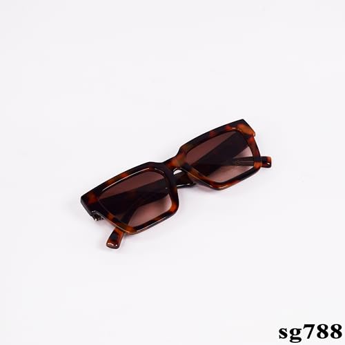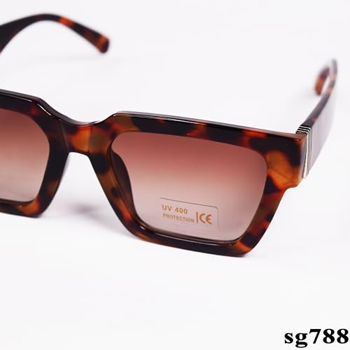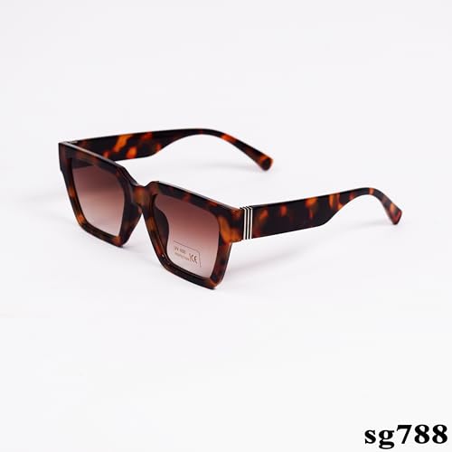 Generic - نظارة شمسية مستطيلة الشكل باطار بنمط صدفة السلحفاة وعدسات بلون بني متدرج sg788