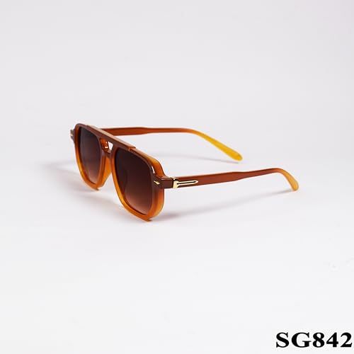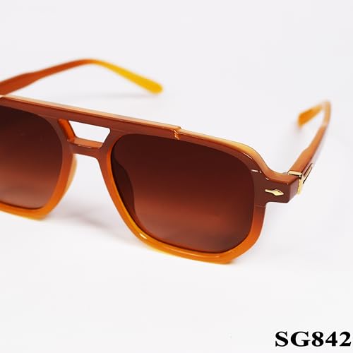 Generic - نظارة شمسية للجنسين SG842، اطار بتصميم صدفة السلحفاة، عدسات بلون بني متدرج