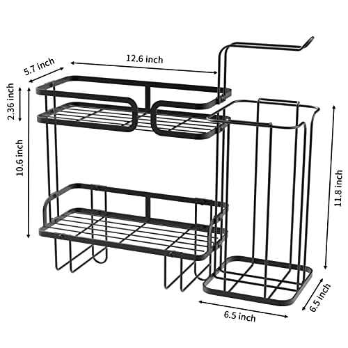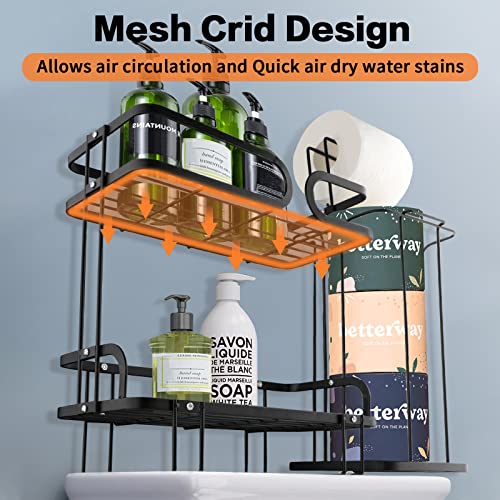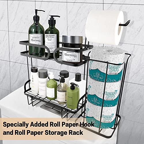 SGAGO - اس جي او رف تخزين فوق المرحاض من طبقتين حامل ورق دولاب الحمام موفر للمساحة بدون حفر مع تصميم يثبت على الحائط اسود
