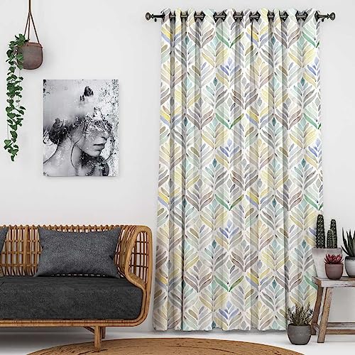 Shatta Fabrics and Curtains - ستارة شا، طباعة اوراق شجر بالوان مائية، 24 شريط على جانب واحد
