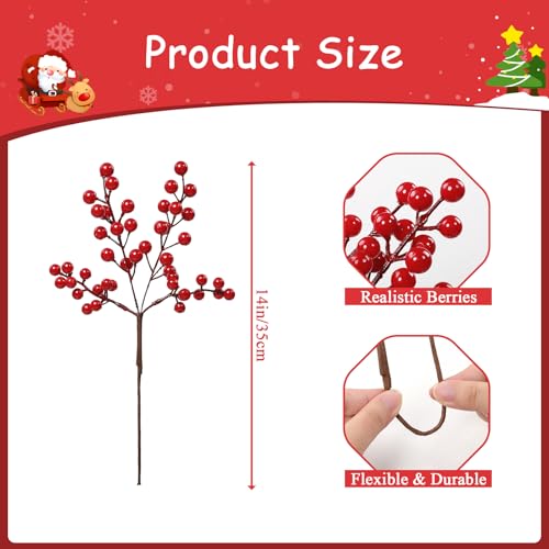 - جودة فائقة: التوت الأحمر للكريسماس مصنوع يدويًا من الإسفنج. مظهر واقعي، ناعم ولامع. يمكن أن تلبي سيقان التوت الصناعي سعيك لتحقيق احتياجات الجمال والديكور وتسليط الضوء بسهولة على جو المهرجانات والكريسماس.