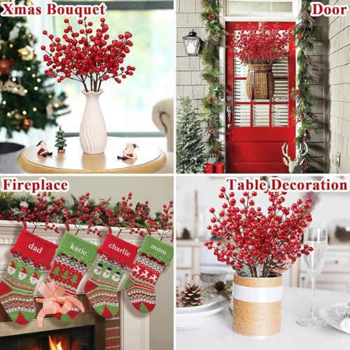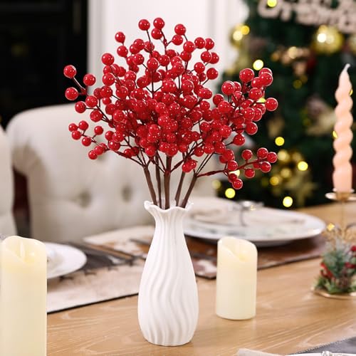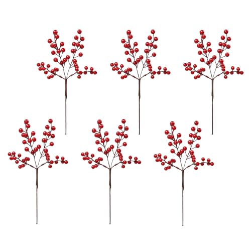 SHACOS - جذع توت أحمر للكريسماس، أعواد توت أحمر اصطناعي، سيقان فروع شجرة الكريسماس لتزيين شجرة الكريسماس وإكليل الزهور والحرف اليدوية التي تصنعها بنفسك من شاكوس، 6 قطع