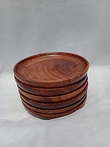 SHAHAZ CRAFTS - طبق شيشام خشبي من شهاز كرافتس® تقديم عشاء بيتزا للمنزل والمطبخ مجموعة 6 مقاس-8 انش - 21 سم.