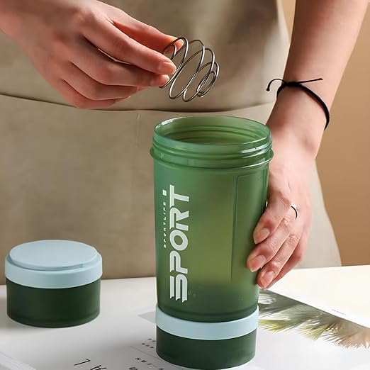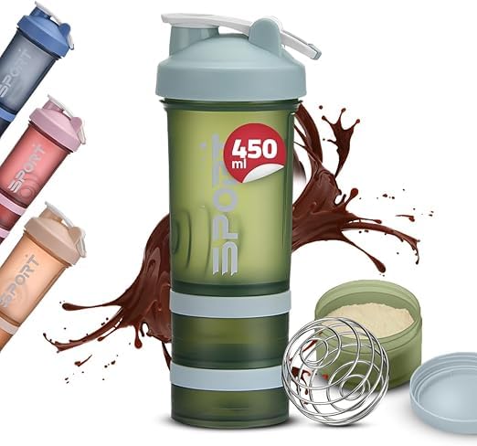 Generic - زجاجة شيكر مع منظم حبوب الدواء وتخزين مسحوق البروتين - مياه رياضية من 3 طبقات 450 مل بغطاء مانع للتسرب حافظات تغلق باللف خالية بيسفينول أ - مثالية للجيم واللياقة البدنية أخضر