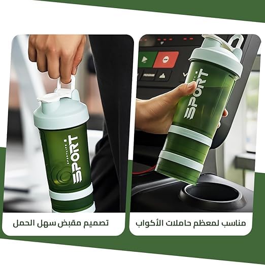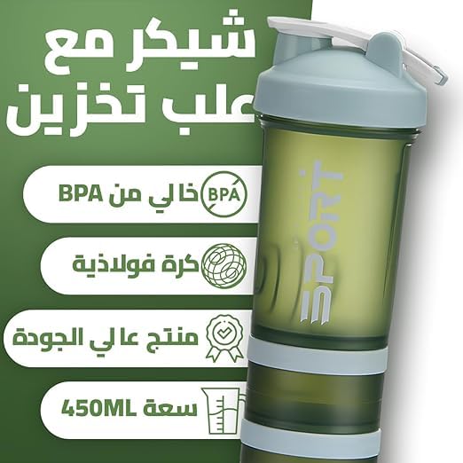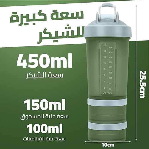 - تصميم الكل في واحد: زجاجة شيكر مع منظم ومساحة تخزين مدمجة ومنفصلة لمسحوق البروتين وحبوب الدواء، مثالية لرواد صالة الألعاب الرياضية وعشاق اللياقة البدنية.