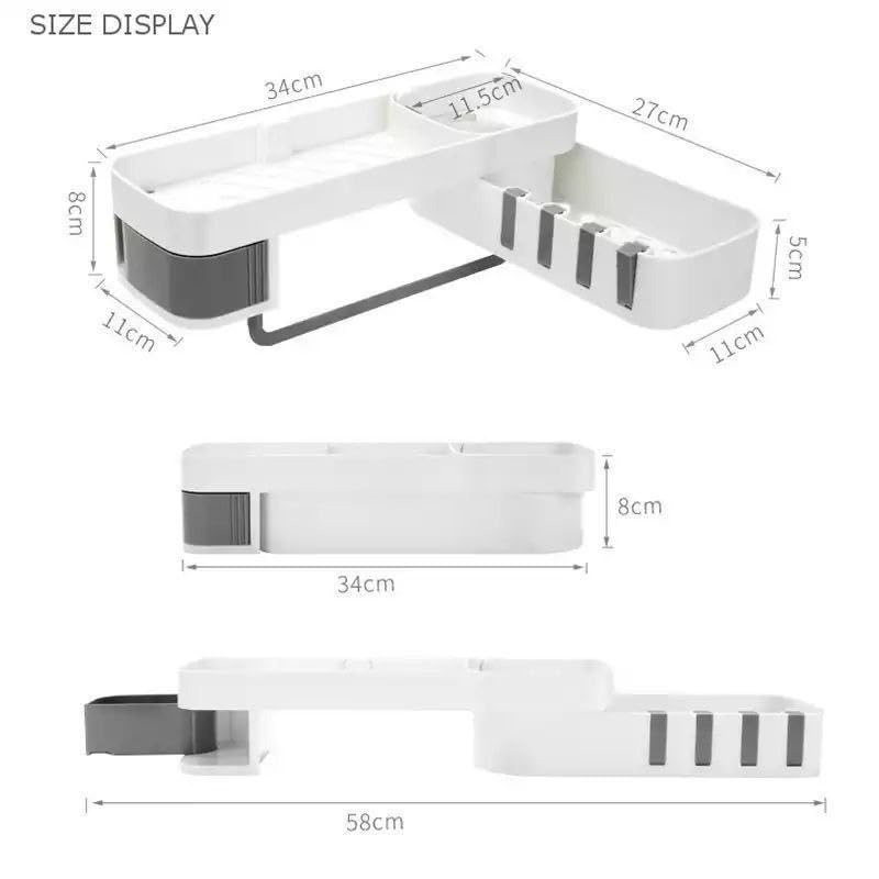 Generic - حامل و منظم شامبو و فرش معجون وفرش أسنان وفوطة - حل كامل للحمامات مع مكبس وكوبايات - من جينيريك
