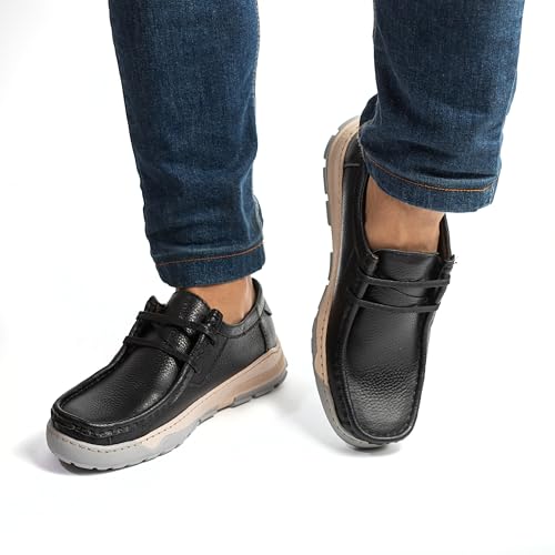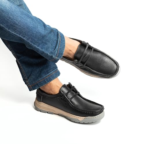 Generic - حذاء اوكسفورد جلد برباط للرجال من شموازيت - كاجوال وشبه رسمي بتصميم مريح | اسود، مقاس EU 40