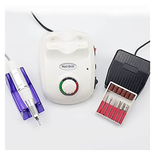 SHANG-JUN - مبرد اظافر كهربائي بسرعة 35000 لفة في الدقيقة للعناية بالاظافر، مبرد اظافر كهربائي لتصميم فن تزيين الاظافر مع مجموعة رؤوس مبارد الاظافر (اللون: 502-ابيض)