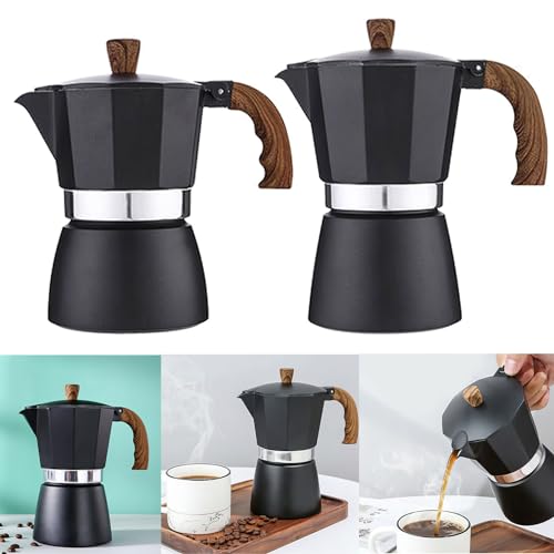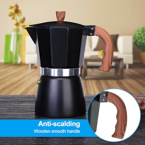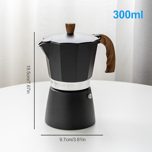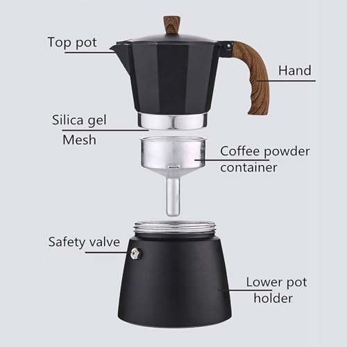 SHANGSKY - اس اتش اي ان جي كيه واي ماكينة تحضير قهوة اسبريسو ايطالية سعة 10 اونصة القهوة على الموقد من الالومنيوم مع مقبض خشبي الاسبريسو اسود
